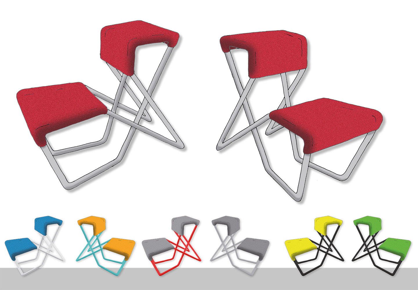 Der Wettbewerb forderte zur Entwicklung eines Objektmöbels für das Produktportfolio der Firma Johanson Design aus Schweden auf. Unser Beitrag zeigt ein aus unserer Sicht längst überfälliges, mehrfach verwendbares Sitzmöbel. Man kann hier nicht nur die Rückenlehne zum Sitzen zweckentfremden – sie soll tatsächlich auch statisch als Sitz- und Tischfläche ausgelegt sein. Passend zum Möbeldesign des Herstellers kombiniert das Möbel Stahlrohr mit Polster-Elementen, die zeitgemäß auch in mutigen Farbkombinationen ausgeführt sein können. Ein Möbel, wie wir es uns für Kommunikationsbereiche wünschen!
