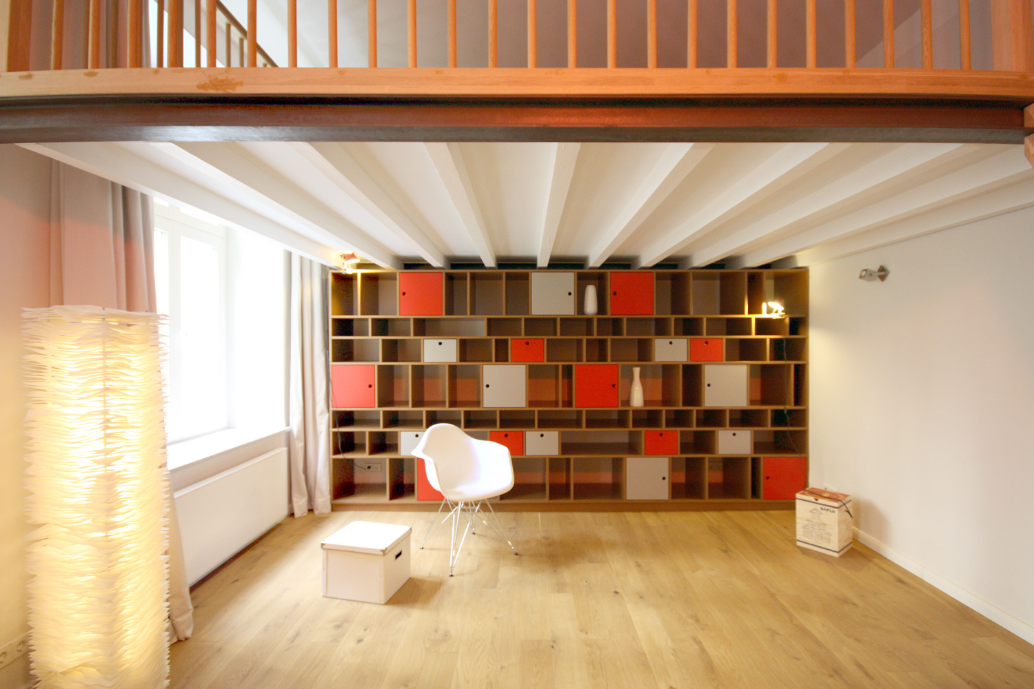 Mit der fest eingebauten, platzsparenden Schlafebene und der Mehrfachnutzung des Zwischenbereichs ist der Entwurf angesichts knappen Wohnraums auch heute noch hochaktuell.