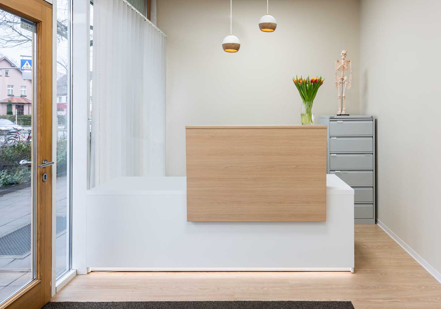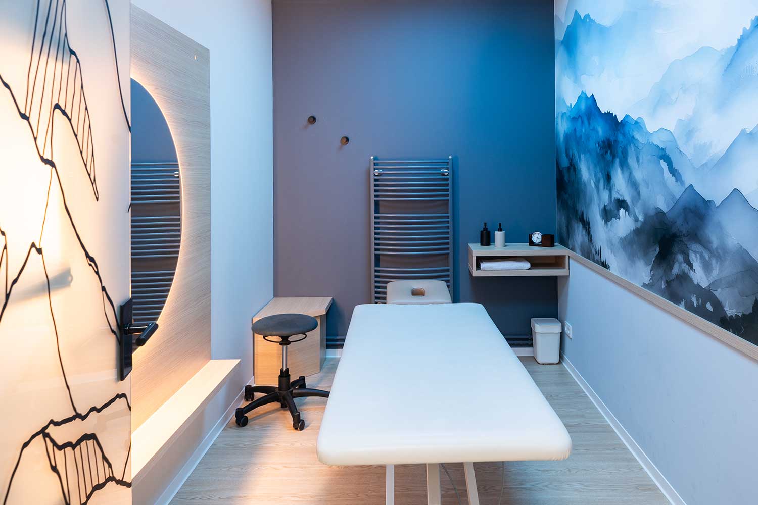 Nach der Übernahme einer bestehenden Physiotherapiepraxis initiierte der neue Besitzer eine umfassende Renovierung der Räumlichkeiten. Der Umbau wurde von uns minutiös geplant und in nur vier Wochen vollständig abgeschlossen. Der Fokus lag auf einer verbesserten Raumaufteilung, die den Bedürfnissen der Patienten und Therapeuten gerecht wird. Es entstanden fünf akustisch zueinander abgeschlossene, technisch belüftete und klimatisierte Behandlungsräume. Diese bieten jetzt mehr Platz und Bewegungsfreiheit, vor allem aber mehr Vertraulichkeit. Der Hauptfokus beim Umbau der Praxis lag auf der sensitiven Gestaltung der Behandlungsräume.