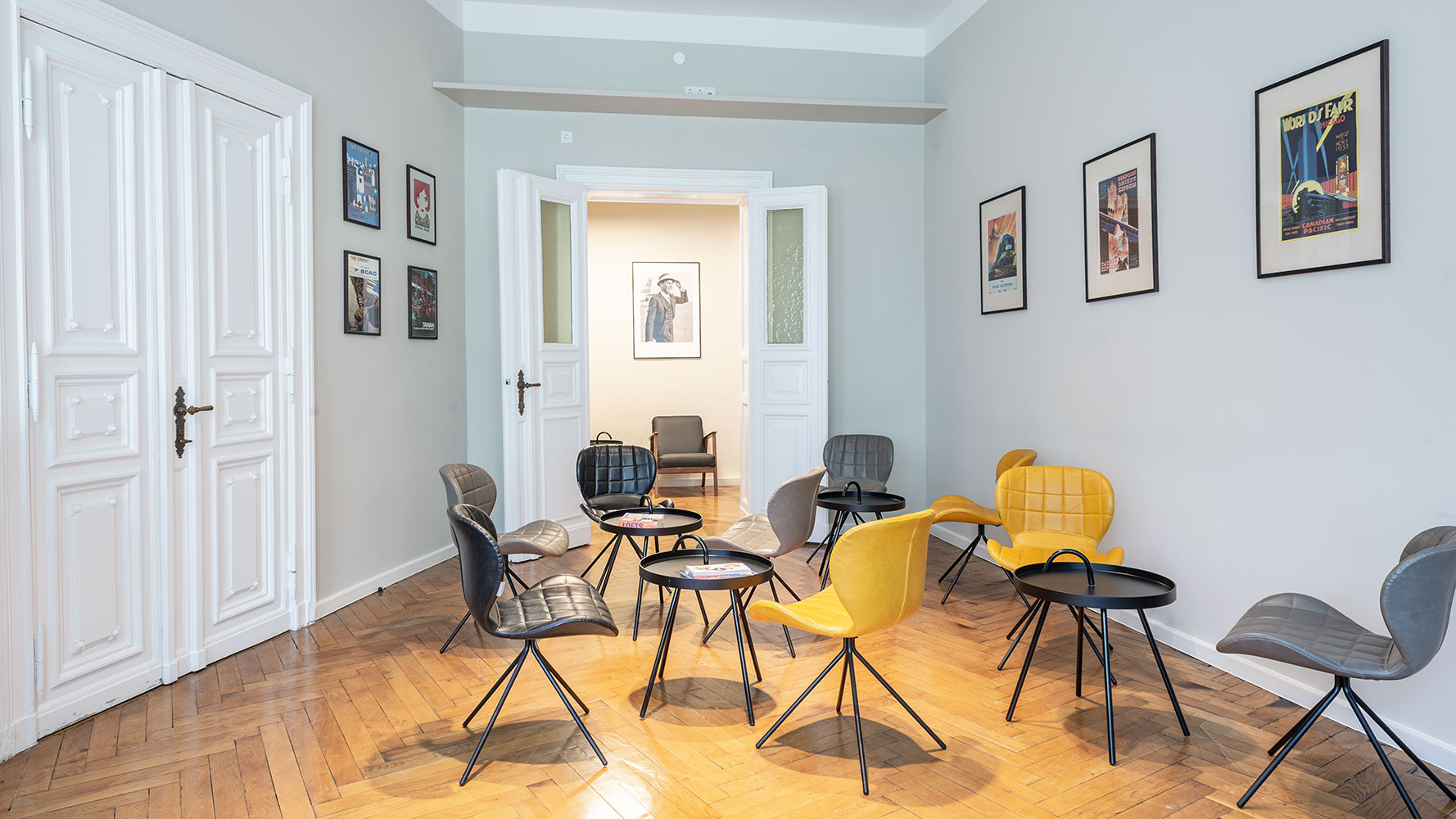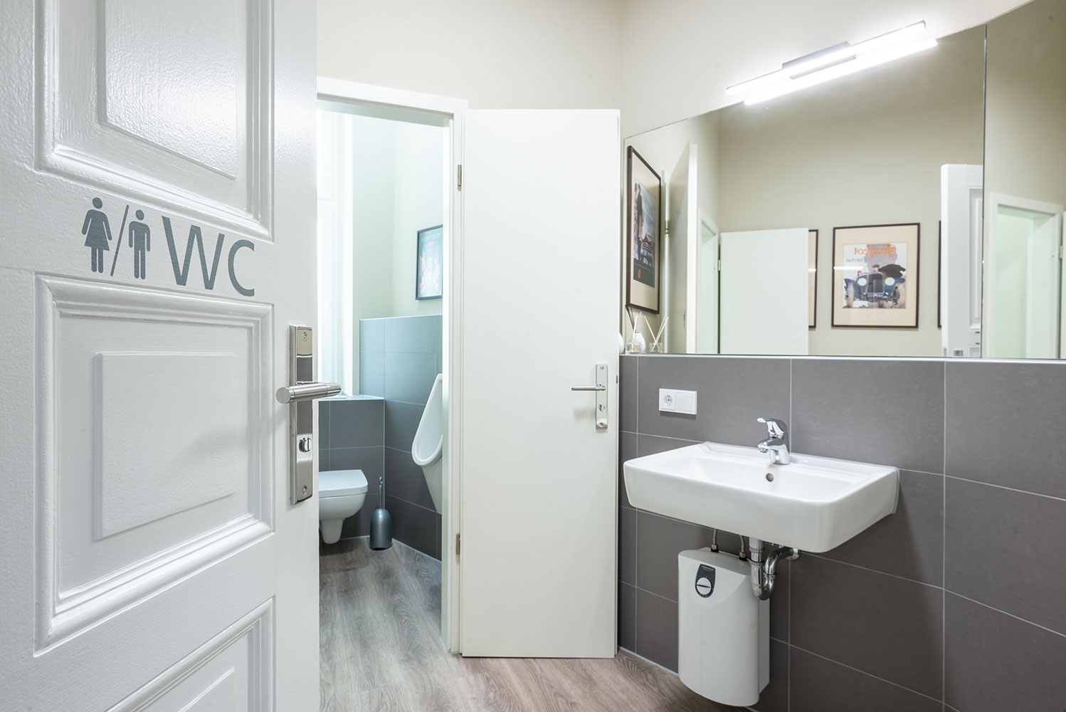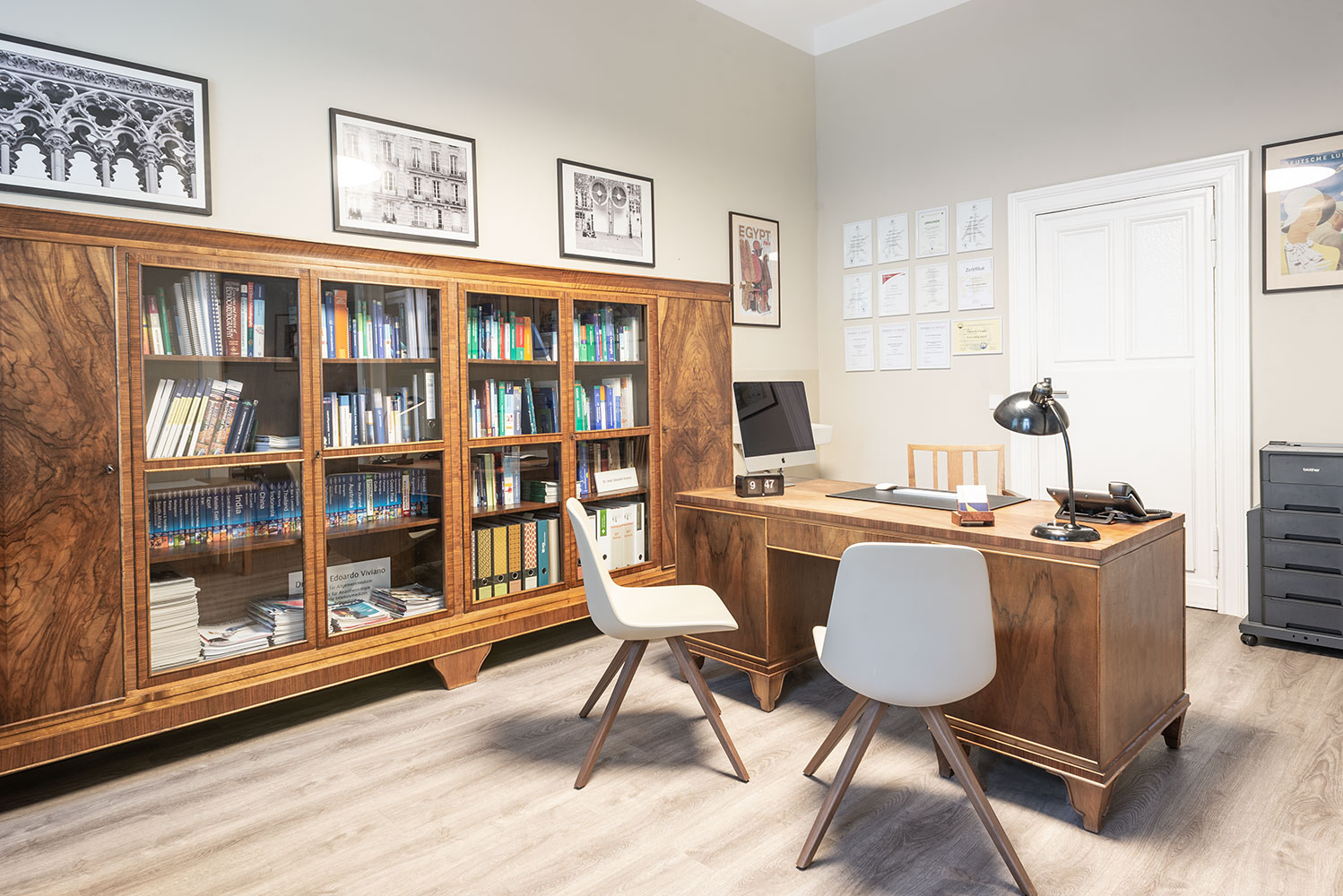 Werbeplakate von Fluggesellschaften der 50er und 60er Jahre vermitteln neben der Lust auf ferne Länder auch Mondänität, Weltoffenheit und Eleganz. Nach der Übernahme der alten Praxis für Allgemeinmedizin wollte der neue Betreiber mit einer Spezialisierung für Reisemedizin diese Atmosphäre auch in seine neuen Räume integrieren. Dafür wurde die gesamte Praxis umgebaut und neu gegliedert. Warme Holztöne beim Bodenbelag harmonieren mit sandfarben abgetönten Wänden. Die oben beschriebenen Werbeplakate wurden dunkel gerahmt und erzeugen gemeinsam mit einer Kombination von historischen und modernen Möbeln eine wohnliche Atmosphäre. Besonders beindruckend ist der originale Propeller eines historischen Flugzeugs oberhalb der Wasser- und Kaffeestation. Die kommunikative Loungemöblierung für Gäste und Patienten erinnert niemanden mehr an sterile Wartezimmer. Vielmehr lädt die vorhandene Reisebibliothek dazu ein, von den nächsten Fernzielen zu träumen.