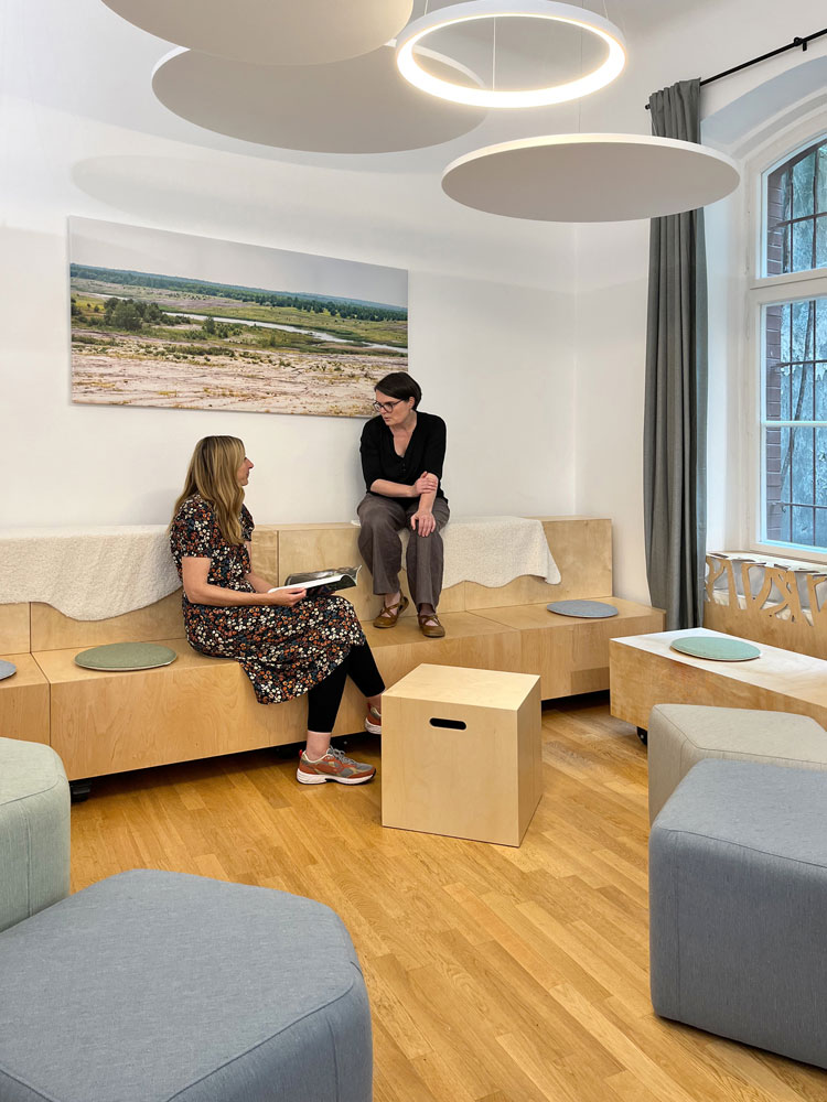 Helle, freundliche Arbeitsräume inspirieren und eine Polstergruppe ermöglicht persönliche Beratungen und Gespräche, etwa mit Abgeordneten und Kooperationspartner*innen.