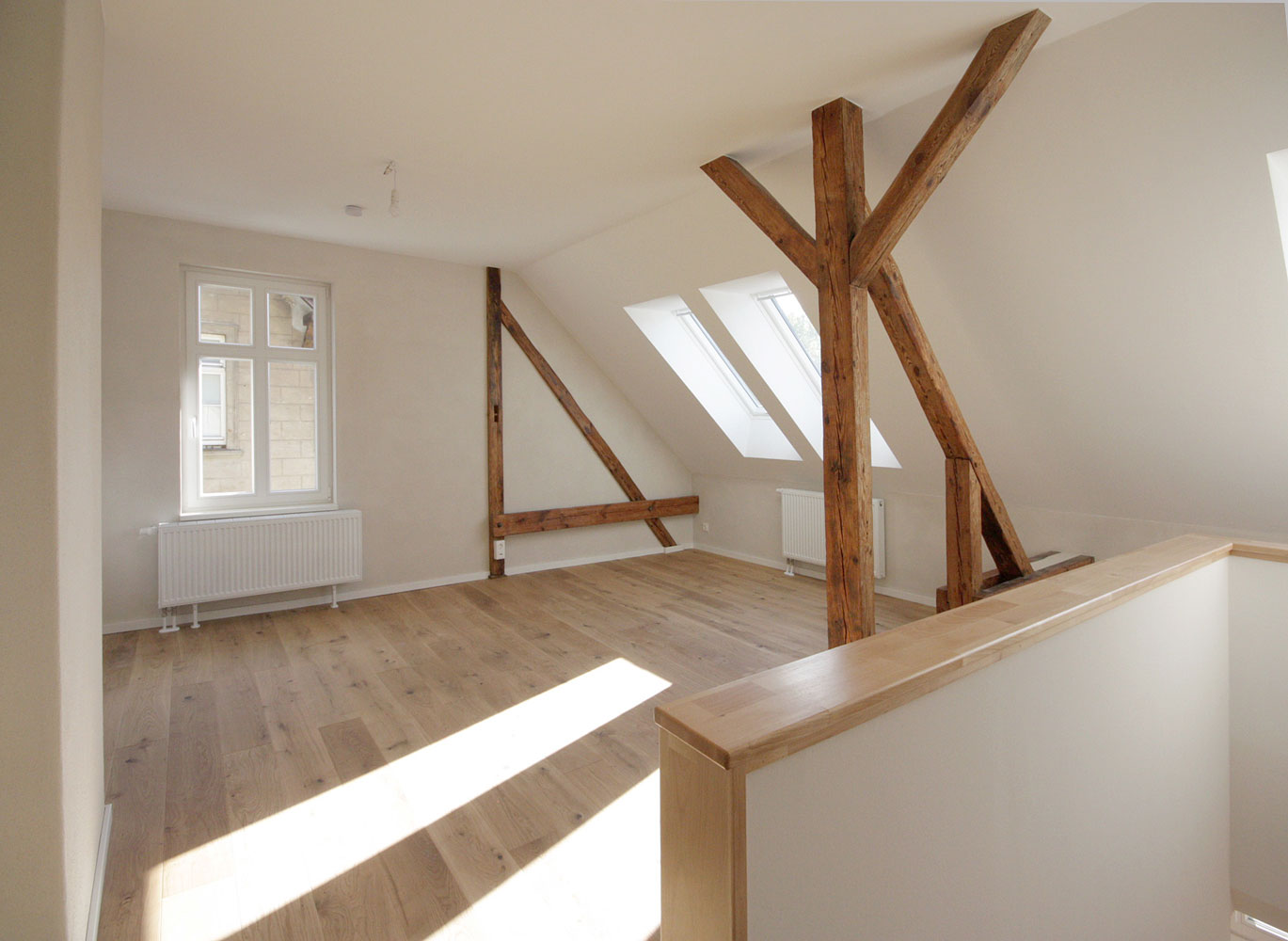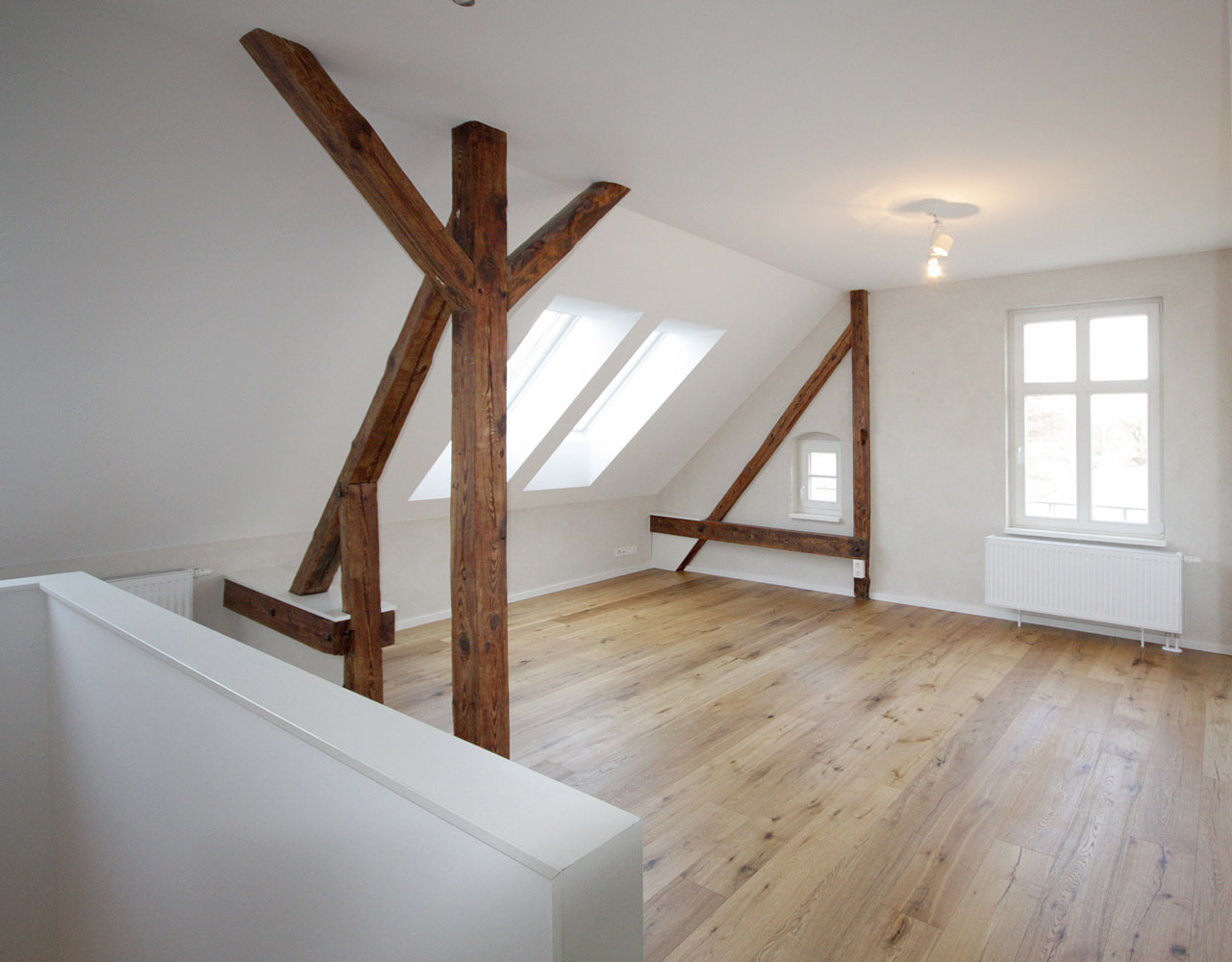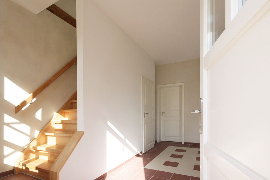 Nach der Sanierung und Gestaltung haben die in den vorherigen Nachwendejahren mehrfach überformten Innenräumen wieder eine dem Charakter des Hauses angemessene Atmosphäre. Gleichzeitig wird eine offene und helle Stimmung erzeugt.